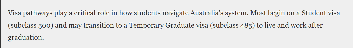 The report observes that in 2022-23, 53% of graduates obtained a further visa after their Student visa, with 45% taking up a Temporary Graduate visa and 17% the now-closed Pandemic Event visa (subclass 408). The report adds that Temporary Graduate visas are the most common post-study option for higher education graduates, providing up to four years of work in any job, while VET graduates face shorter post-study periods linked to skills shortage occupations.