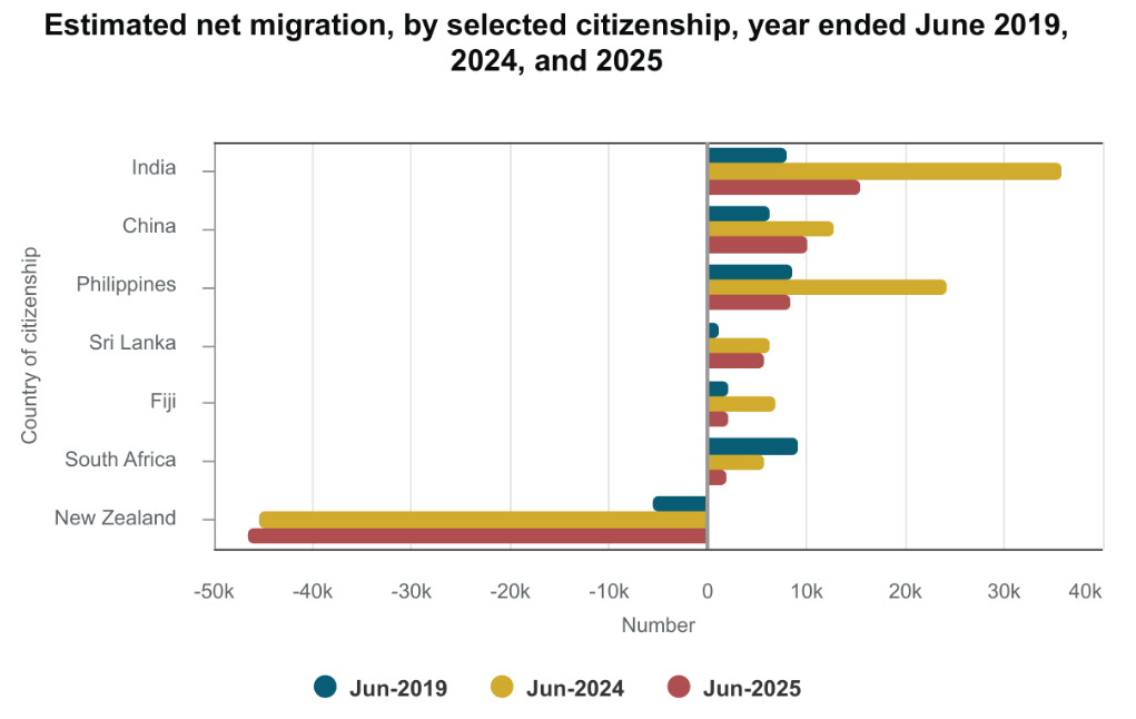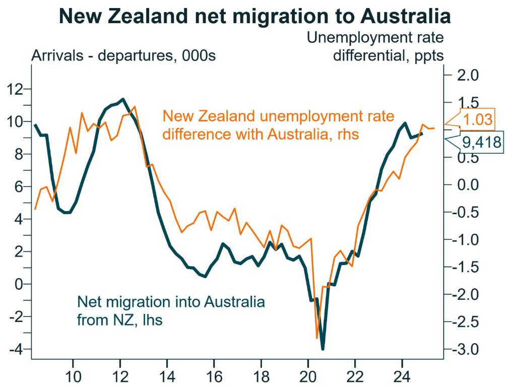 At the same time, migration data shows a wave of New Zealanders relocating to Australia amid better job prospects and higher wages.