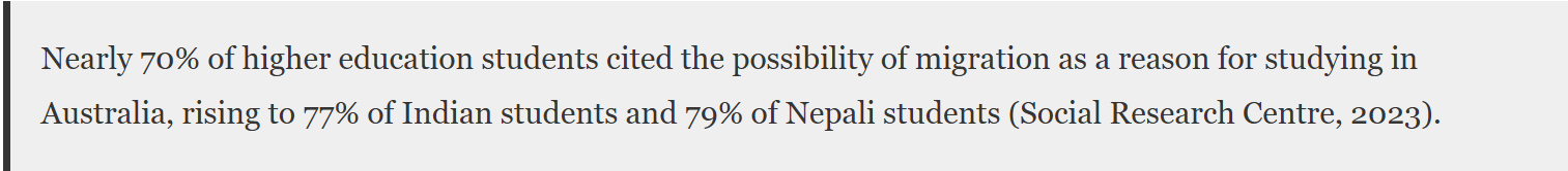 The report adds that migration goals influence not just the choice of study destination, but also course and occupation selection. Many VET students enrol in Commercial Cookery courses, while higher education students pursue nursing, accounting, IT, and engineering—all pathways historically linked to permanent residency. According to the report, this often means students prioritise visa outcomes over industry experience.