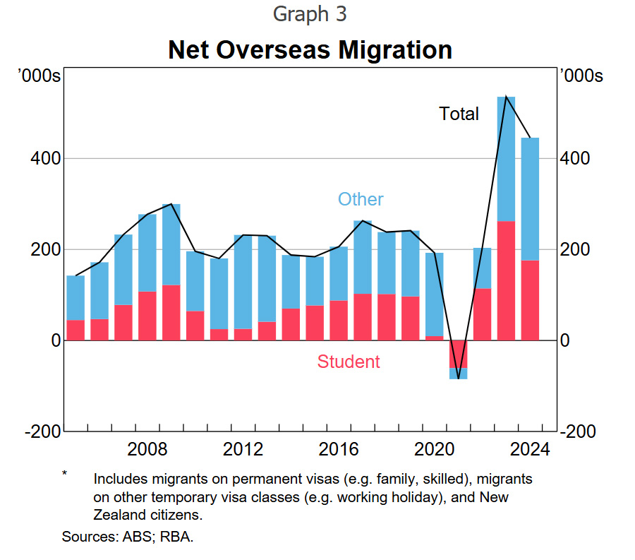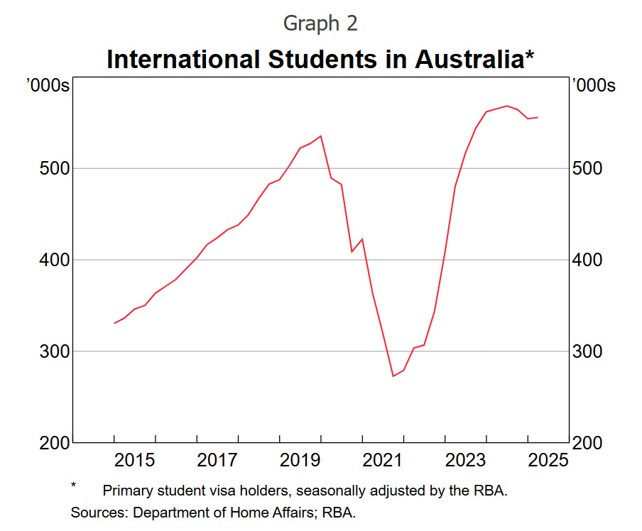 Meanwhile, International students continue to play a vital role in the Australian economy, contributing through tuition fees, consumer spending, and as part of the labour force. Their spending has been a significant driver of demand.